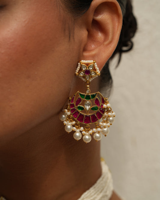The emerald green stone looks so rich and classy—perfect for traditional and fusion outfits.
