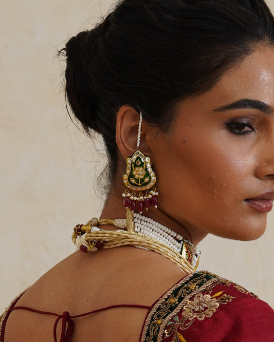 The emerald green stone looks so rich and classy—perfect for traditional and fusion outfits.