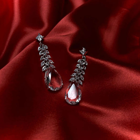 Boond Silver Sterling Tear Drop Earrings with American Diamonds
