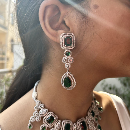 Ruhani Emerald Green American Diamond Necklace Set with Maang Tikka