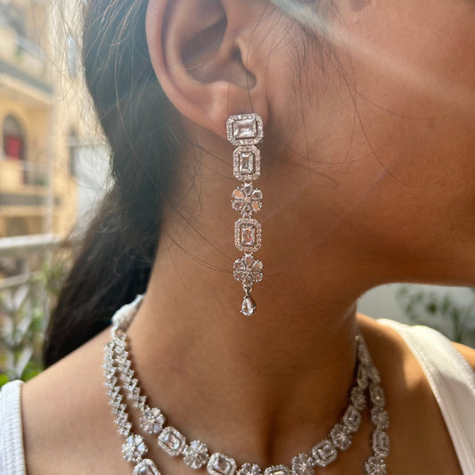 Elegantly layered silver American diamonds shimmer beautifully—perfect for Indian weddings or festivals.