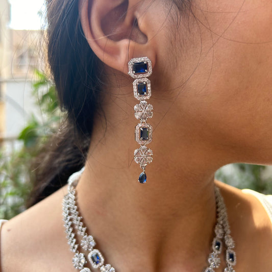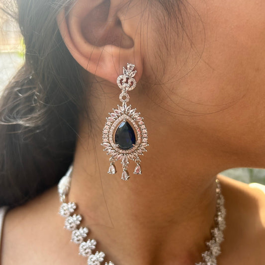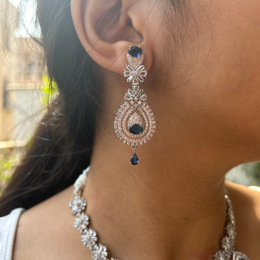 Sahira Sapphire Blue Double Layer American Diamond Necklace Set