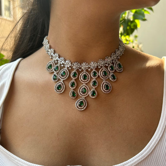 Sahira emerald green Double Layer American Diamond Necklace Set